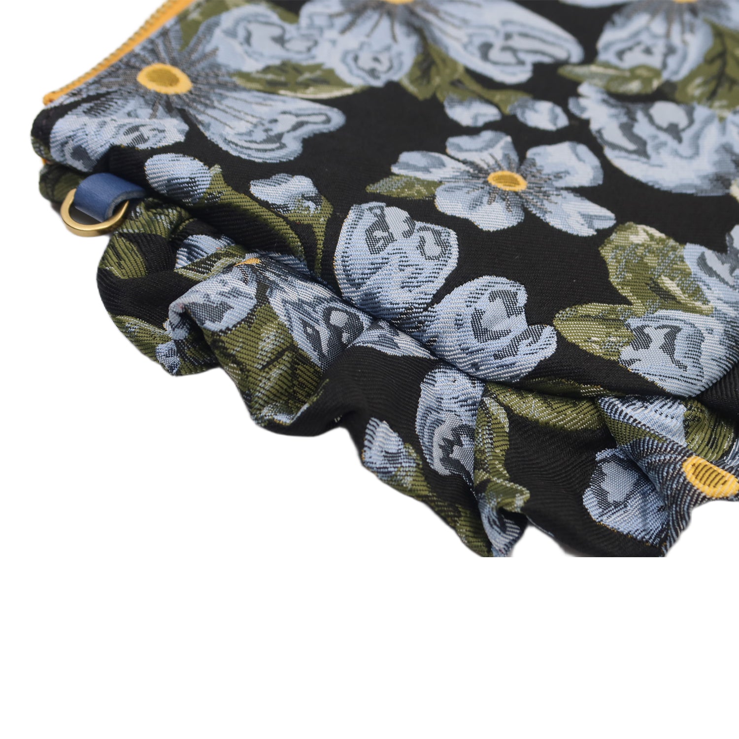 The 'Dolly' Frilly edged Bag is made from colourful woven Brocade or Fabric with a wavy Moiré Silk effect Lining. They are finely finished with an inside pocket and a Tafetta Woven Ribbon Label designed to look Vintage.